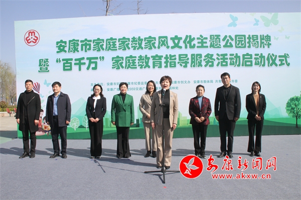 本網(wǎng)訊(記者 張喬)3月3日,由市婦聯(lián)、市紀(jì)委監(jiān)委、市關(guān)工委、市創(chuàng)文辦、市教體局、共青團(tuán)安康市委舉辦的家庭家教家風(fēng)文化主題公園揭牌暨“百千萬”家庭教育指導(dǎo)服務(wù)活動(dòng)啟動(dòng)儀式在江灘公園舉行,市人大常委會(huì)副主任楊首艷出席并宣布活動(dòng)啟動(dòng)。