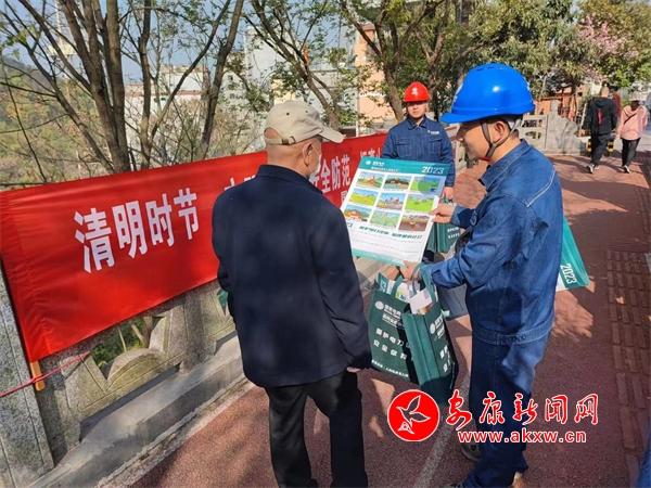 本網(wǎng)訊(通訊員 方興宣)4月1日,在香溪洞景區(qū)內(nèi),國網(wǎng)安康供電公司工作人員提前出動,利用休息日向前來祭祀的群眾發(fā)放電力設(shè)施保護(hù)宣傳單,宣講預(yù)防山火注意事項。