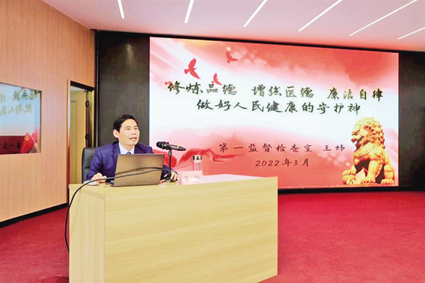 為了進(jìn)一步深入推進(jìn)清廉醫(yī)院建設(shè),打造一支政治素質(zhì)高、工作能力強、服務(wù)質(zhì)量優(yōu)、群眾反映好的醫(yī)療衛(wèi)生隊伍,努力營造風(fēng)清氣正、健康向上的政治生態(tài)和干事創(chuàng)業(yè)、擔(dān)當(dāng)作為的良好環(huán)境,醫(yī)院先后于3月16日、4月14日,組織召開了2023年黨建暨黨風(fēng)廉政建設(shè)工作推進(jìn)會和醫(yī)療領(lǐng)域廉潔購銷暨警示教育廉政談話會。會議動員全員職工,凝聚共識、形成合力,積極踐行“忠誠、干凈、擔(dān)當(dāng)、學(xué)習(xí)、奉獻(xiàn)”工作標(biāo)準(zhǔn),嚴(yán)格落實廉潔從業(yè)“九項準(zhǔn)則”,全心全意為人民看好病、服好務(wù),為在中國式現(xiàn)代化道路上聚力建設(shè)幸福安康凝聚智慧和力量。