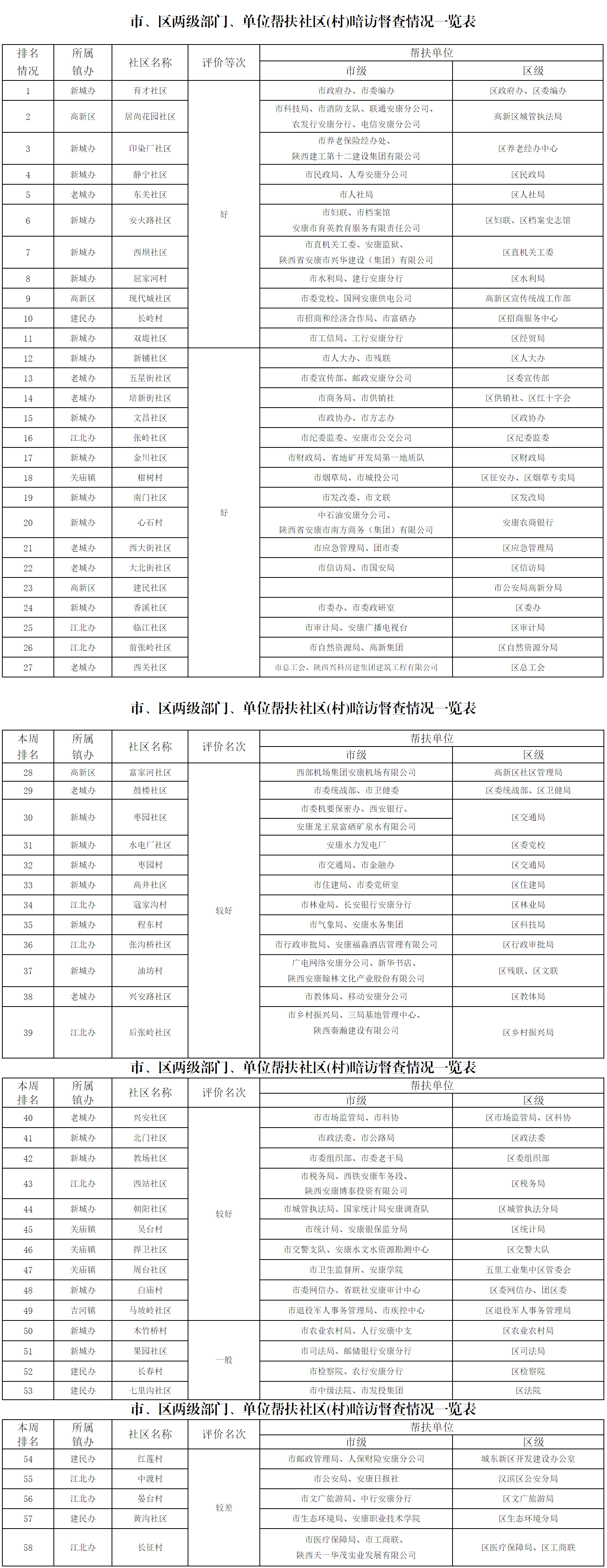 附:市、區(qū)兩級(jí)部門(mén)、單位幫扶社區(qū)(村)暗訪(fǎng)督查情況一覽表