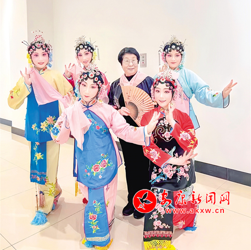 王發(fā)蕓日常為學(xué)生們指導(dǎo)排戲,并與他們合照。 (受訪者供圖)