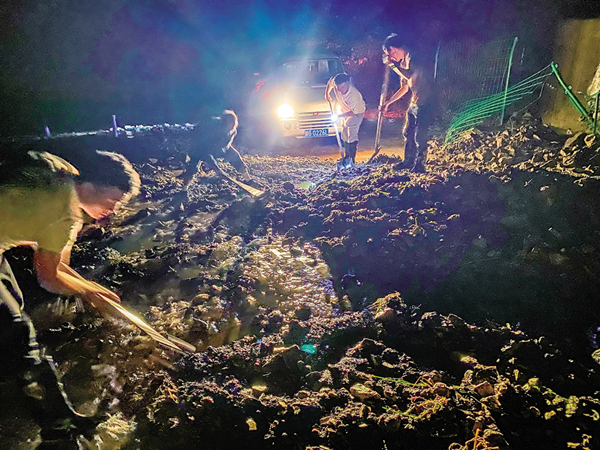 ⇑ 9月20日,嵐皋縣民主鎮(zhèn)農(nóng)田社區(qū)山洪沖上路面,鎮(zhèn)黨委、政府和社區(qū)黨支部立刻組織網(wǎng)格員、應(yīng)急搶險(xiǎn)隊(duì)到一線抗洪搶險(xiǎn)。陳城 攝
