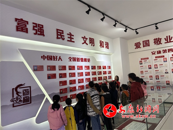志愿者利用非遺互動(dòng)墻組織孩子們學(xué)習(xí)《紅軍老祖》的故事,通過(guò)文字、圖片以及志愿者的講解讓孩子們直觀了解英雄事跡,了解到“紅軍老祖”這種尊稱(chēng)背后,寄托著人民群眾對(duì)紅軍真誠(chéng)、淳樸、久遠(yuǎn)的熱愛(ài)和懷念。隨后,志愿者帶孩子們參觀“安康好人館”,“安康好人館”分成前言板塊、全國(guó)道德模范及中國(guó)好人板塊、陜西道德模范及陜西好人板塊、安康道德模范板塊,培養(yǎng)和樹(shù)立孩子們“誠(chéng)實(shí)守信”“助人為樂(lè)”“孝老愛(ài)親”“敬業(yè)奉獻(xiàn)”“見(jiàn)義勇為”的文明意識(shí)。最后,志愿者將孩子們帶到書(shū)畫(huà)展廳,通過(guò)參觀、講解的方式,讓孩子們感受傳統(tǒng)文化的藝術(shù)魅力,希望孩子們學(xué)習(xí)藝術(shù)作品的構(gòu)圖、色彩搭配、線條等藝術(shù)手法并運(yùn)用到自己的學(xué)習(xí)當(dāng)中。