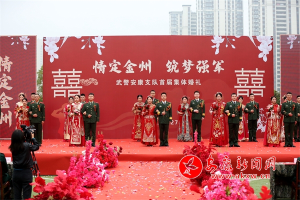 據(jù)悉,此次集體婚禮是該支隊(duì)組建以來首次舉行,準(zhǔn)備期間支隊(duì)邀請(qǐng)官兵家屬“沉浸式”走進(jìn)軍營,參觀營區(qū)軍史長廊,了解支隊(duì)歷史、感受部隊(duì)發(fā)展,分享榮譽(yù)成就,進(jìn)一步增強(qiáng)家屬的認(rèn)同感和獲得感,不斷凝聚強(qiáng)軍興軍的意志力量。