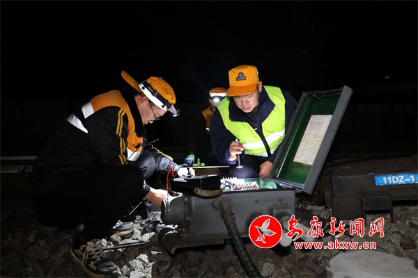 圖為該段職工正在檢查道岔設(shè)備 王建滆攝
