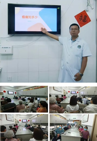 護(hù)士長(zhǎng)馬運(yùn)俠以播放癌痛科普視頻的方式,通過臨床疼痛案例深入淺出地將癌痛防治知識(shí)分享給大家,現(xiàn)場(chǎng)與患者進(jìn)行了“話療”,消除他們的緊張情緒,幫助他們樹立抗擊癌痛的信心,科學(xué)的防癌抗癌,受到患者及家屬的一致好評(píng)。