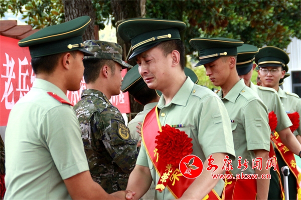 一雙雙緊握的手、一個(gè)個(gè)深情的擁抱,伴隨著悠揚(yáng)的音樂(lè),在送行的人群中我們看到了戰(zhàn)友們緊緊相擁,你一言、我一語(yǔ),無(wú)一不訴說(shuō)著戰(zhàn)友之間無(wú)限的眷戀?粗磳⒎謩e的戰(zhàn)友,官兵們?cè)僖部刂撇蛔?nèi)心的情感,眼中的淚水如斷線的珠子不斷滑落。這不僅是對(duì)軍營(yíng)生活的留念,更是對(duì)軍旅青春的不舍。