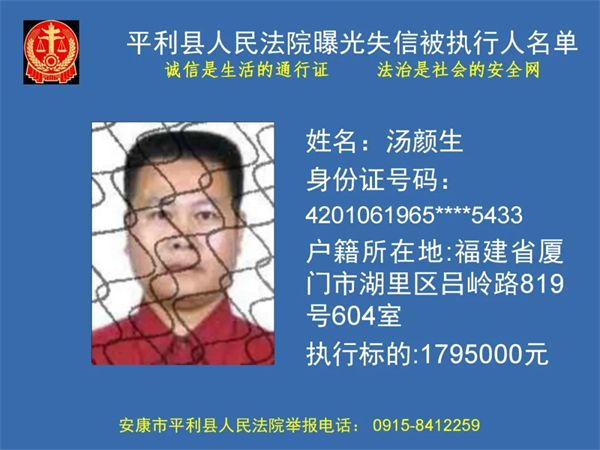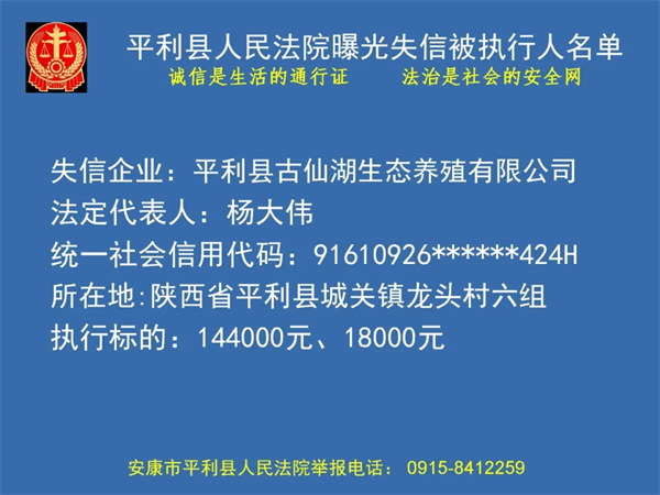 曝光失信 | 平利縣人民法院曝光失信被執(zhí)行人名單(2024年第一季度)