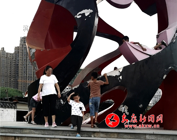 近日,記者在漢調(diào)二黃文化園看到,游玩的市民絡繹不絕,大部分市民都能做到文明游園,但其中也存在不文明行為。這里是文化園主題雕塑,幾個10歲左右的小男孩不斷攀爬雕塑,并在離地面約2米的高處逗留,現(xiàn)場既無工作人員勸導也沒有“禁止攀爬”的相關提示牌。記者 潘潤生 攝qSu安康新聞網(wǎng)