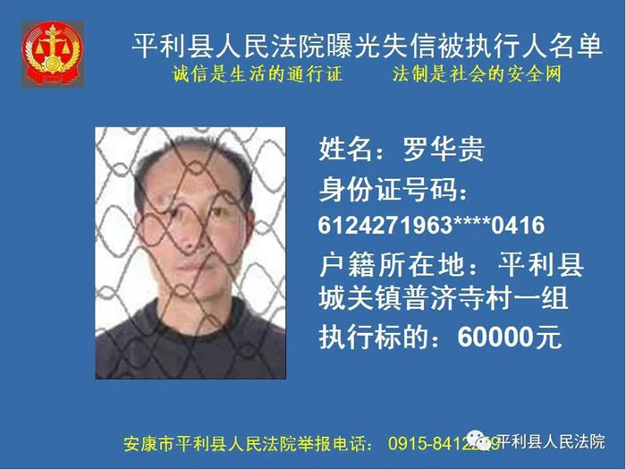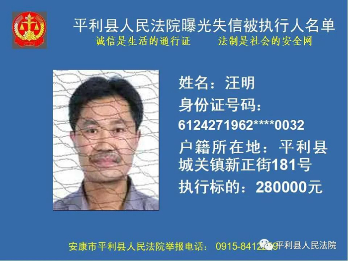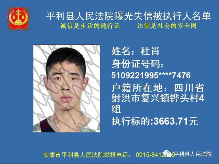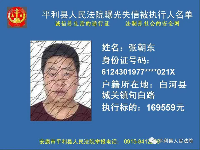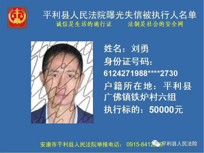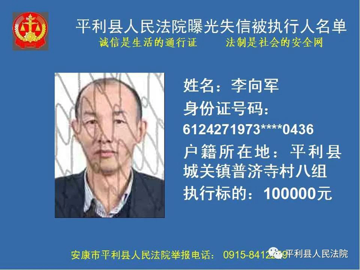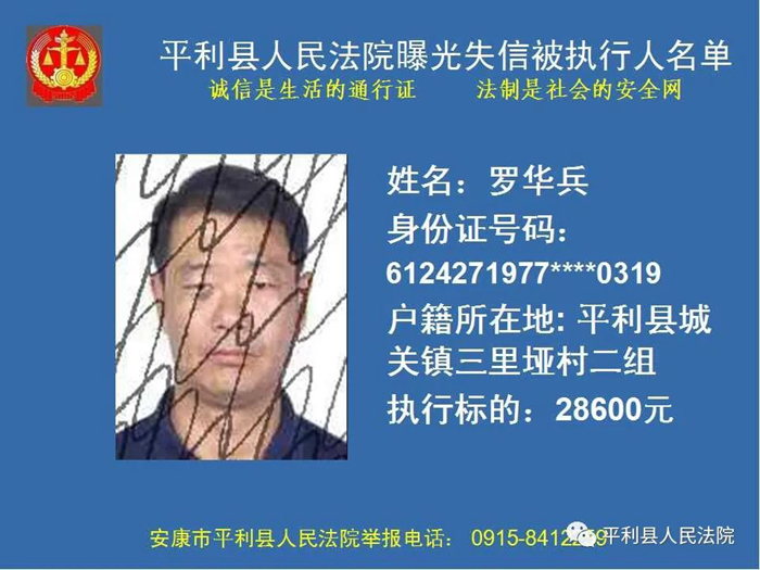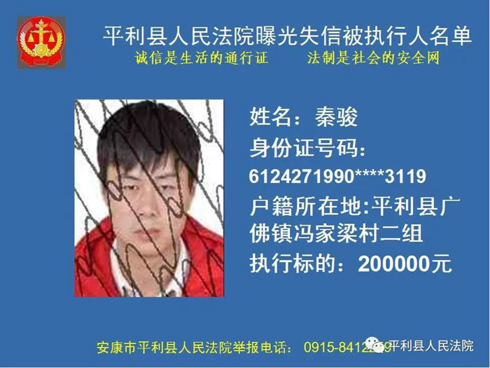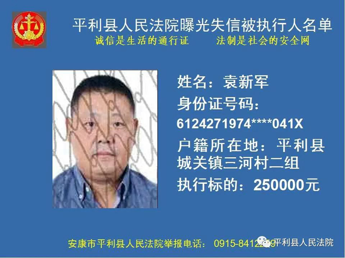 曝光失信 | 平利縣人民法院曝光失信被執(zhí)行人名單(2022年第一、二季度)