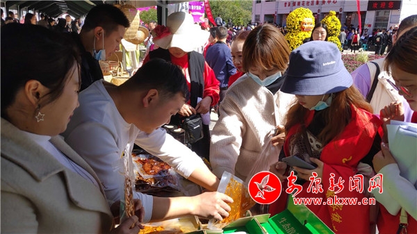 在扶貧產(chǎn)品展銷(xiāo)區(qū),土蜂蜜、臘肉、茶葉等特色農(nóng)副產(chǎn)品擺滿了各個(gè)展臺(tái),前來(lái)品嘗購(gòu)買(mǎi)的游客爭(zhēng)相購(gòu)買(mǎi)。“這個(gè)豆腐干不錯(cuò),給我來(lái)兩袋。”剛買(mǎi)了臘肉干,張女士又帶了兩袋農(nóng)戶自制的豆腐干,裝了滿滿一袋子。