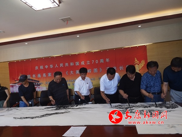 據(jù)悉,《大美秦嶺》千米畫卷從今年四月份開始繪制,西安、北京、南京、蘇州、嘉興、合肥、上海等城市的許多書畫名家共同參與創(chuàng)作,目前已繪制二百余米。國畫《大美秦嶺》千米長卷將記錄大秦嶺從新中國建國到改革開放40年的歲月變遷,是祖國建國70周年的獻禮作品。