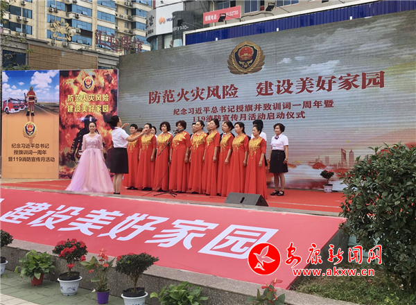 活動(dòng)現(xiàn)場(chǎng),相關(guān)負(fù)責(zé)人宣讀“社區(qū)消防宣傳大使”獲評(píng)名單并為十名“社區(qū)消防宣傳大使”頒發(fā)了聘書(shū),F(xiàn)場(chǎng)人員先后觀看了大型城市商業(yè)綜合體滅火救援演練短片、成品油庫(kù)突發(fā)險(xiǎn)情消防救援演練短片。相關(guān)消防人員進(jìn)行了消防救援設(shè)備展示,向觀眾展示了消防無(wú)人機(jī)等消防救援設(shè)備。安康市詩(shī)詞協(xié)會(huì)朗誦藝術(shù)社、社區(qū)群眾先后表演了詩(shī)朗誦《永恒的信念》和合唱《山丹丹花開(kāi)紅艷艷 我和我的祖國(guó)》。隨后,相關(guān)工作人員為現(xiàn)場(chǎng)群眾發(fā)放了消防安全明白卡、消防安全知識(shí)手冊(cè)等各類(lèi)消防宣傳資料。