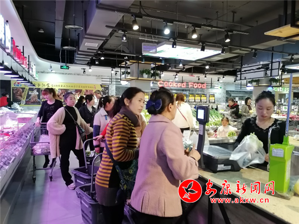 記者在城區(qū)內(nèi)各超市看到,實(shí)體店的購物狂歡,也很接地氣。促銷員叫賣各種特惠商品,大量民眾在挑選價(jià)格優(yōu)惠的生鮮、飲品、果蔬,超市收銀臺前也排起長隊(duì)。