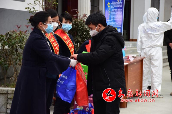 活動現(xiàn)場,白河縣人社部門、中國郵政集團白河縣分公司為赴蘇務工人員贈送了愛心禮包,預祝他們平安返崗。