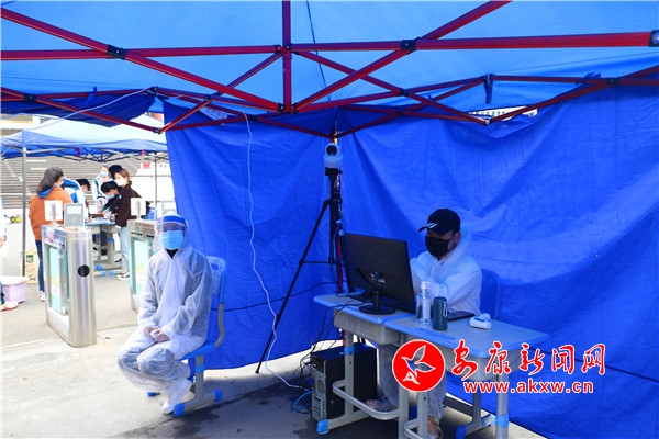 在高新中學(xué)校門口,安保人員、新冠肺炎疫情防控人員及公安、防疫人員早已定點(diǎn)就位,并逐一對(duì)入校的學(xué)生進(jìn)行防控檢查。
