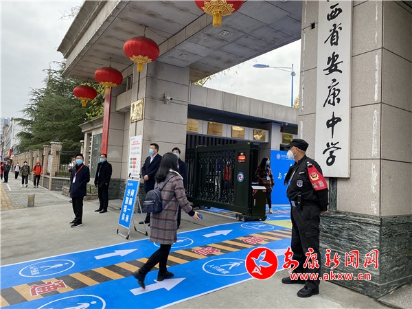 記者在安康中學(xué)校園外觀察到,每個(gè)人都戴著口罩,每隔幾步都會(huì)有工作人員和老師對(duì)學(xué)生進(jìn)行引導(dǎo),幫助學(xué)生完成相關(guān)入校流程,提醒學(xué)生彼此距離盡量保持在一米以上,保持安全距離,確保進(jìn)校有序安全。在校門口內(nèi),擺放有熱成像紅外線人體測(cè)溫儀,每個(gè)進(jìn)入校園的同學(xué)體溫?cái)?shù)據(jù)會(huì)自動(dòng)顯示在監(jiān)測(cè)人員的電腦上,體溫是否異常,一目了然。對(duì)于體溫有異常的,工作人員會(huì)拿額溫計(jì)在進(jìn)行二次測(cè)量,確保不漏一人。