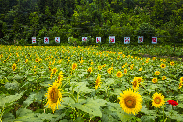 本網訊(記者 李。8月1日,艷陽高照,朵朵白云點綴著蔚藍的天空,金黃的向陽花將整個竹葉村裝點得分外靚麗。“暢游秦楚山水 體驗長壽文化 相約竹葉花海”陜西鎮(zhèn)坪牛頭店•湖北竹溪泉溪鄉(xiāng)村旅游推介、招商引資啟動儀式暨竹葉村第二屆向陽花節(jié)”在鎮(zhèn)坪縣竹葉村盛大開幕。