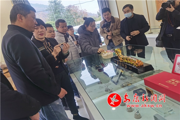 采訪團(tuán)一行首先到達(dá)安康市石泉縣池河鎮(zhèn),該鎮(zhèn)著力圍繞“鎏金銅蠶”打造“金蠶文化。其中,“鎏金銅蠶”文創(chuàng)產(chǎn)品展銷中心是陜西歷史博物館授權(quán)掛牌的全省首家縣級鎏金銅蠶文創(chuàng)產(chǎn)品展示推廣中心,也是國內(nèi)首家以鎏金銅蠶文化為內(nèi)核打造的文創(chuàng)展銷平臺。明星旅游村屬于金蠶小鎮(zhèn)打造的農(nóng)桑體驗版塊,該村依托蠶桑產(chǎn)業(yè)和鎏金銅蠶文化,積極探索“農(nóng)旅融合”“文旅融合”模式,大力開發(fā)鄉(xiāng)村旅游。目前,已累計投資8000萬元,建成桑園6000余畝,種植各類桑品種1000余種;建成桑品種博覽園、果桑采摘園、特色民居、桑海小木屋、農(nóng)家樂、空中漂流、山地摩托、天空之鏡、桑海酒吧等一大批旅游體驗項目,并配套建設(shè)了桑棲旅游環(huán)線、供水系統(tǒng)、旅游公廁、生態(tài)停車場、標(biāo)識導(dǎo)視、鄉(xiāng)村大舞臺等公共服務(wù)設(shè)施。