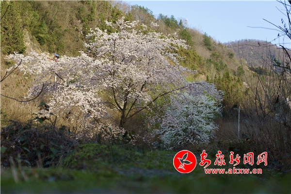 本網(wǎng)訊(記者 李俊 實習記者 卜昊天)近日,漢濱區(qū)晏壩鎮(zhèn)漫山的野生櫻桃花在和煦的春風中競相盛開。遠眺山林,從山腳到山頂次第綻放,山澗幽谷處處粉白,民居藏于其中,宛若世外桃源,起伏的山脈被一簇簇壓滿整個枝頭的櫻桃花所覆蓋。