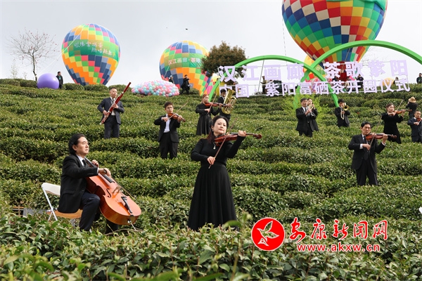 開園儀式有茶山實(shí)景演藝、紫陽民歌聯(lián)唱、祭茶神儀式、華服秀等。上午10時(shí),開園儀式在沉浸式交響樂《春之聲》中浪漫開場,樂團(tuán)成員分布在茶園間,音符隨山風(fēng)流淌,樂聲與茶山風(fēng)光交相輝映,觀眾置身茶園,仿若與自然共譜春之樂章。茶山大秀《生生不息》以天地為幕、茶園為臺(tái),采茶號(hào)子響徹山谷,7位紫陽民歌手帶來的聯(lián)唱《山河共鳴》,以原生態(tài)唱腔配以舞蹈演員的靈動(dòng)演繹,唱響茶鄉(xiāng)人民對自然的敬畏與生活的熱愛。整場演出高潮迭起、亮點(diǎn)紛呈,令嘉賓和游客們流連忘返。