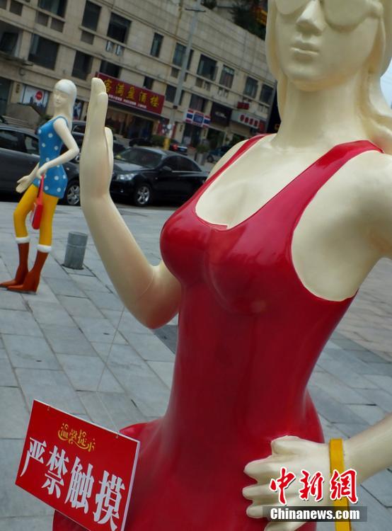 湖北一廣場性感模特塑像誘人“嚴(yán)禁觸摸”