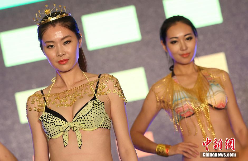 靚麗的模特、耀眼的黃金內(nèi)衣……8月6日晚,一場(chǎng)以黃金為主題的時(shí)尚秀在南京國(guó)際會(huì)議中心上演,輪番登場(chǎng)的模特精彩演繹紫金愛濤珠寶所帶來的獨(dú)特魅力,其中一款價(jià)值過百萬、用萬足金打造的內(nèi)衣更是令現(xiàn)場(chǎng)的觀眾過足了眼癮。 泱波 攝AZv安康新聞網(wǎng)
