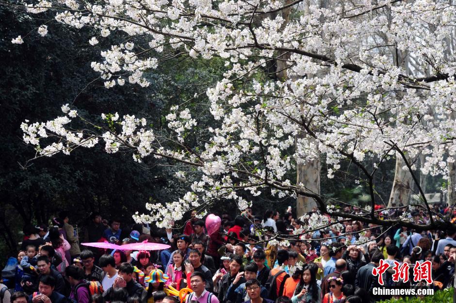 武大櫻花盡開(kāi)放 游客擠爆校園