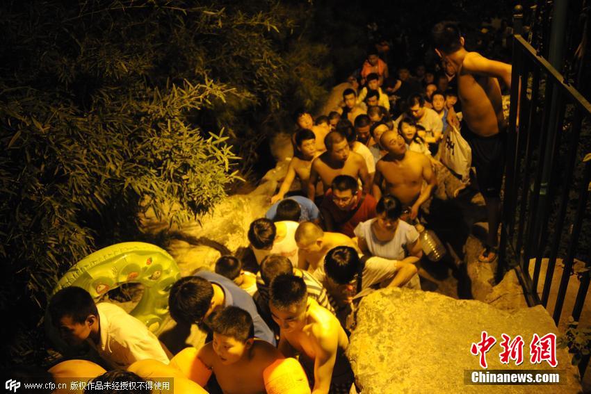 2015年07月28日,山東省濟(jì)南市,免費(fèi)泉水浴場(chǎng),吸引數(shù)百人在門外排“長(zhǎng)等待。場(chǎng)面十分壯觀。據(jù)了解,由于濟(jì)南持續(xù)高溫悶熱,這兩天泉水浴場(chǎng)迎來了今年以來的最高峰,每天人滿為患,大概日接客近千人。管理方表示,人數(shù)爆滿時(shí)會(huì)適度限制市民進(jìn)入。陳寧 攝 圖片來源:CFP視覺中國(guó)Z4L安康新聞網(wǎng)