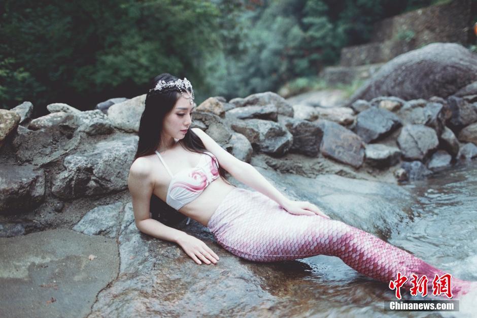 江西龍虎山上演真人版“美人魚Twins”