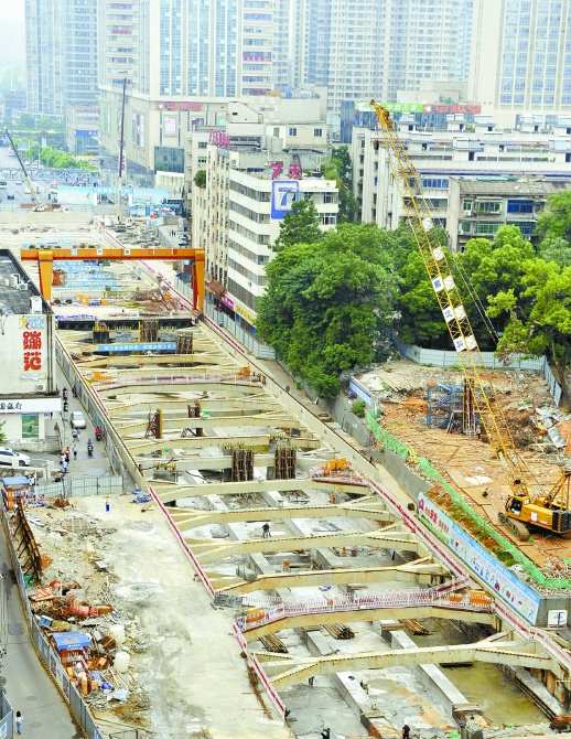 為加快施工進(jìn)度,該項(xiàng)目六溝垅站在實(shí)施“半蓋挖”改“明挖”方案后,順利攻克長沙市最復(fù)雜交通疏解和西側(cè)鋪蓋系統(tǒng)的“巴掌空間”作業(yè)環(huán)境,確保車站如期封頂。