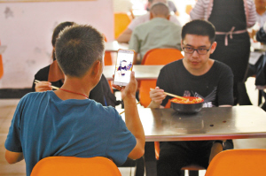 ■一位家長用手機(jī)記錄孩子第一次在大學(xué)食堂吃飯。