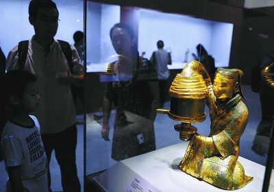 特展上的長信宮燈。本報(bào)記者 李繼輝攝