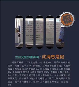 9月14日,蘭州交警通過官方微信公眾號(hào)發(fā)布澄清聲明:我們從來沒有發(fā)布過以上內(nèi)容的消息,也從來沒有出臺(tái)過任何相關(guān)政策,手機(jī)APP處理交通違法應(yīng)按照處罰規(guī)定,罰款扣分都不能免除。