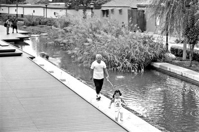 浮雕旁邊還搭建了一些木質(zhì)平臺,居民可以休憩散步。姚文國告訴北青報記者,這條景觀河道,不僅還原了古河道走向,還成為周邊居民的休閑場所,實(shí)現(xiàn)生態(tài)環(huán)境提升!跋乱徊綄Τ吻逑麻l遺址的局部清理修復(fù),國家文物局已經(jīng)批復(fù)了修復(fù)方案,未來將原址原風(fēng)貌地展示。”