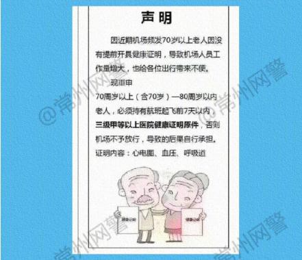 3“70歲以上老人乘機(jī)必須開健康證明”