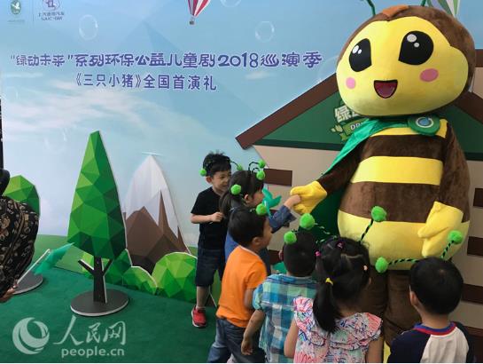 作為“五年計劃”重要部分,“綠動未來”系列環(huán)保公益兒童劇的首部作品《三只小豬》將走進北京、杭州、上海、蘇州、寧波、合肥、武漢、長沙、青島和深圳十個城市。《三只小豬》是百老匯著名的兒童合家歡音樂劇,由“開心麻花”引入國內(nèi)。經(jīng)過改編的《三只小豬》,被賦予了全新的環(huán)保理念,融入了新角色——“綠動未來”環(huán)保公益平臺卡通形象“小青蜂”。在當日的首演中,“小青蜂”不斷向小朋友們傳播環(huán)保知識,讓孩子們在歡樂看劇時感悟自然、綠色、成長與愛。