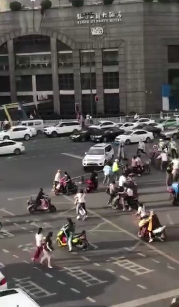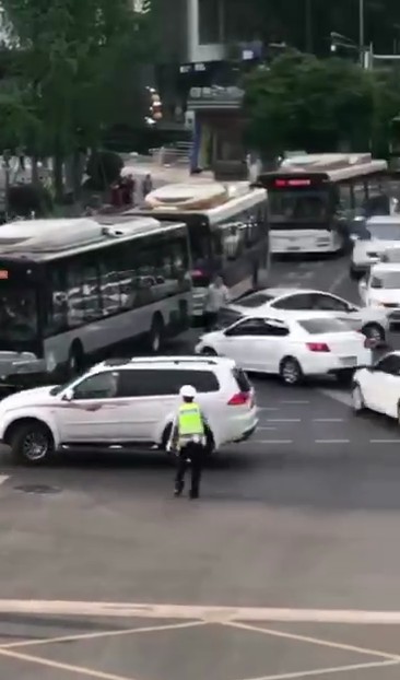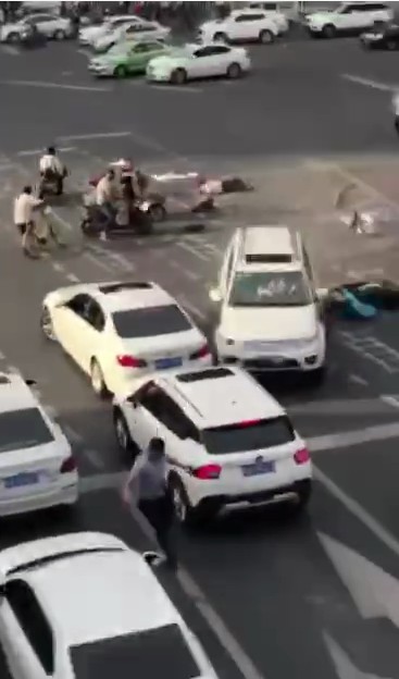 事故發(fā)生后,網(wǎng)上流傳著關(guān)于該案的現(xiàn)場(chǎng)視頻。一輛白色越野車(chē)在原地多次轉(zhuǎn)圈后,從順城大街逆向往鹽市口方向沖去,路口等待的多輛電瓶車(chē)被撞倒,最終撞向一輛白色汽車(chē)后停止。隨即,路口執(zhí)勤交警和公安將肇事車(chē)駕駛員控制。