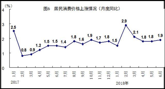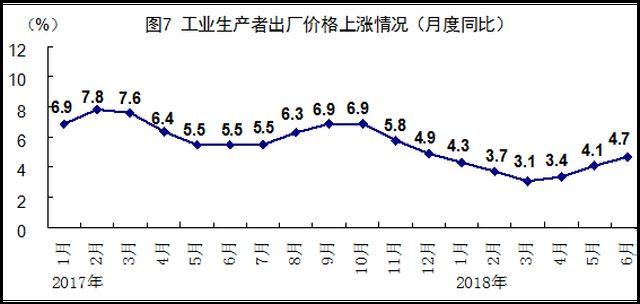 上半年,全國居民消費價格同比上漲2.0%,漲幅比一季度回落0.1個百分點。分類別看,食品煙酒價格同比上漲1.4%,衣著上漲1.1%,居住上漲2.3%,生活用品及服務(wù)上漲1.6%,交通和通信上漲1.2%,教育文化和娛樂上漲2.1%,醫(yī)療保健上漲5.5%,其他用品和服務(wù)上漲1.1%。6月份,全國居民消費價格同比上漲1.9%,漲幅比上月擴大0.1個百分點,環(huán)比下降0.1%。上半年,全國工業(yè)生產(chǎn)者出廠價格同比上漲3.9%,漲幅比一季度擴大0.2個百分點;全國工業(yè)生產(chǎn)者購進價格同比上漲4.4%。6月份,全國工業(yè)生產(chǎn)者出廠價格同比上漲4.7%,漲幅比上月擴大0.6個百分點,環(huán)比上漲0.3%;全國工業(yè)生產(chǎn)者購進價格同比上漲5.1%,環(huán)比上漲0.4%。