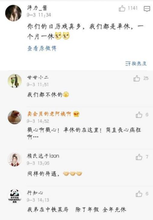 有媒體對(duì)照萬(wàn)年歷,算出從9月開(kāi)始到十一長(zhǎng)假結(jié)束,加上每周末的雙休,期間37天里就有16天在放假!網(wǎng)友看到立刻跳出來(lái),“都是分散的,如果這么說(shuō),我每個(gè)月都有8天假期嘞”。