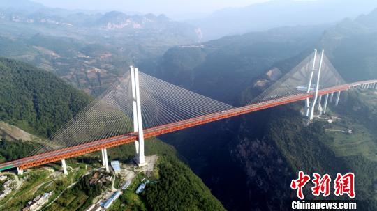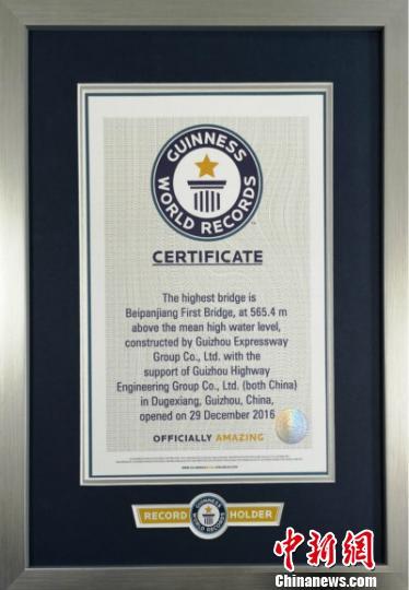 中新網(wǎng)貴陽9月19日電(周燕玲)記者19日從貴州省交通運(yùn)輸廳獲悉,杭瑞高速畢都北盤江大橋,經(jīng)世界紀(jì)錄認(rèn)證機(jī)構(gòu)——吉尼斯世界紀(jì)錄有限公司認(rèn)證,北盤江大橋橋面距江面垂直高度達(dá)565.4米,榮獲“世界最高橋”之稱,載入世界紀(jì)錄大全史冊。