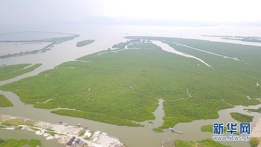 航拍陽西縣程村鎮(zhèn)紅光村紅樹林自然保護區(qū)。新華網(wǎng) 黃璐璐 攝