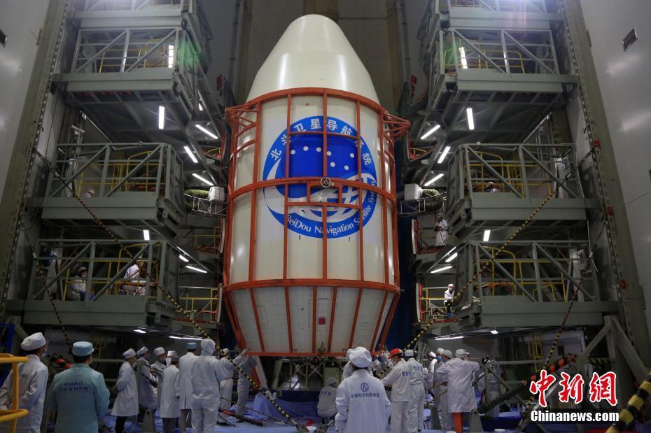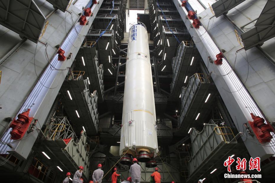 11月1日深夜23時57分,中國在西昌衛(wèi)星發(fā)射中心用長征三號乙運載火箭,成功發(fā)射第41顆北斗導航衛(wèi)星。這顆衛(wèi)星屬于地球靜止軌道衛(wèi)星,是中國北斗三號系統(tǒng)第17顆全球組網(wǎng)衛(wèi)星,也是北斗三號系統(tǒng)首顆地球靜止軌道衛(wèi)星。圖為衛(wèi)星發(fā)射前,火箭在發(fā)射場進行吊裝(資料圖片)。中新社發(fā) 史嘯 攝
