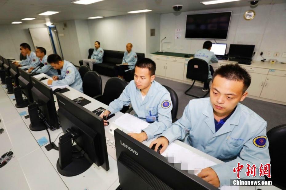 遠望3號船副船長王小兵介紹說:“任務前,我們做了大量軟硬件技術(shù)狀態(tài)驗證、信號特征分析等工作,任務中,還特別關(guān)注目標信號變化趨勢以及各類重要事件,及時準確下達了調(diào)度指揮口令,確保了指揮流暢、上下協(xié)同、任務圓滿!眻D為測控系統(tǒng)崗位人員嚴陣以待。 高超、何露東杰/文 何露東杰 攝
