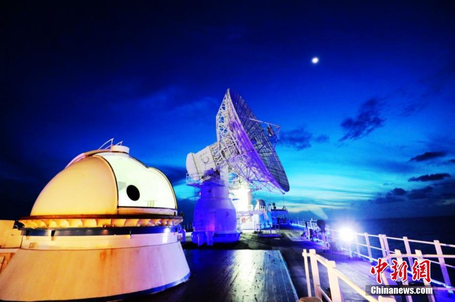 火箭升空飛行20多分鐘后,遠望3號船在距離祖國萬里之遙的大洋深處及時發(fā)現(xiàn)并成功捕獲目標,船載USB統(tǒng)一測控系統(tǒng)迅速接收到火箭遙測參數(shù),并及時處理傳送至西安衛(wèi)星測控中心、西昌衛(wèi)星發(fā)射中心,為中心判斷火箭飛行狀態(tài)提供重要依據(jù);兩套船載航天測控設(shè)備同時對火箭及衛(wèi)星開展測量工作,并及時、準確計算向西安衛(wèi)星測控中心提交了高精度數(shù)據(jù),整個海上測控過程持續(xù)近10分鐘,為火箭三級二次關(guān)機、星箭分離等一系列關(guān)鍵動作提供了有力測控支撐。圖為深夜,遠望3號船精準測控。 高超、何露東杰/文 亓創(chuàng) 攝