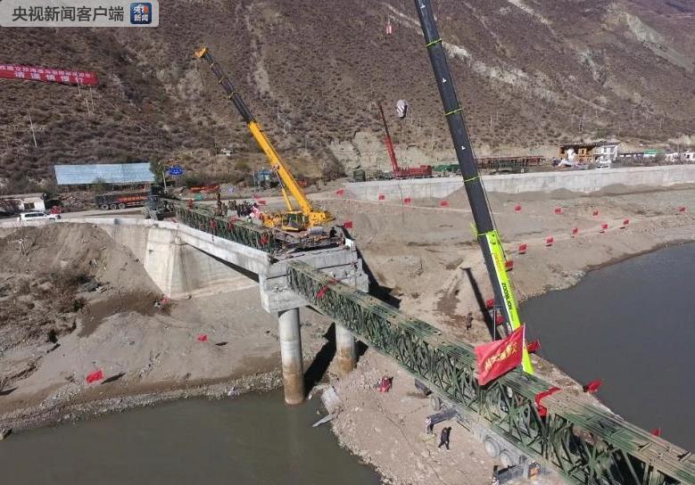 災(zāi)情發(fā)生后,交通運輸部立即派出專家組趕赴現(xiàn)場進(jìn)行勘察。擔(dān)負(fù)川藏、新藏公路搶險保通任務(wù)的武警某部交通三支隊,第一時間分梯隊啟動專業(yè)架橋部隊、架橋設(shè)備至災(zāi)害一線。11月23日下午,交通運輸部專家組正式確定搶通方案后,部隊在24日全面展開金沙江大橋搶建工作。