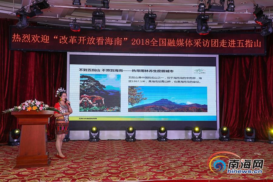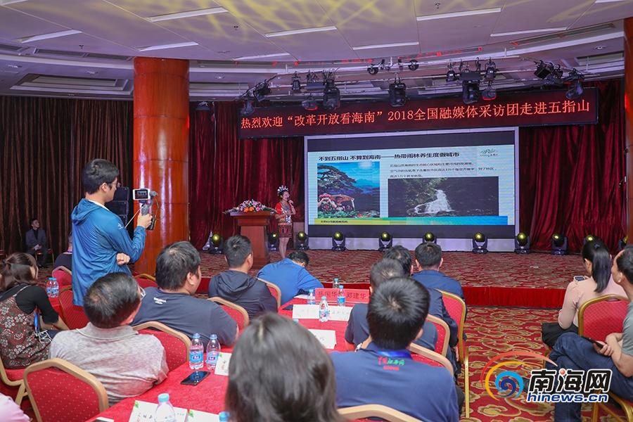 在當(dāng)天的推介會上,五指山市旅游商務(wù)局工作人員對來自全國60余家重點新聞網(wǎng)站、新聞客戶端的編輯記者作了精彩的旅游資源推介,詳細介紹五指山獨特的地理位置、資源形態(tài)、氣候資源、文化底蘊以及有著巨大發(fā)展?jié)摿Φ募t色旅游資源。
