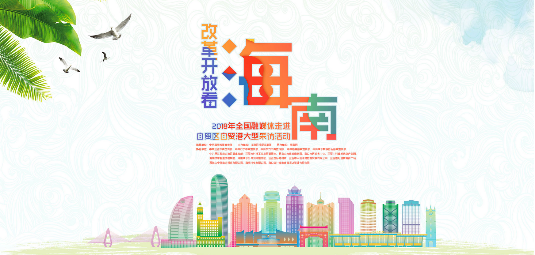 本次活動活動由中共海南省委宣傳部指導(dǎo),海南日報報業(yè)集團主辦,南海網(wǎng)承辦,中共三亞市委宣傳部、中共萬寧市委宣傳部、中共東方市委宣傳部、中共臨高縣委宣傳部、中共陵水黎族自治縣委宣傳部、中共昌江黎族自治縣委宣傳部;三亞市科技工業(yè)發(fā)展委員會、五指山市旅游商務(wù)局、?谑忻裼慰椭行、三亞中科遙感信息產(chǎn)業(yè)園、海南熱帶野生動植物園、海南分界洲島旅游區(qū)、三亞國際免稅城、三亞市天涯海角旅游發(fā)展有限公司、三亞吉陽迎賓海鮮廣嘗五指山中部旅游投資有限公司、海南核電有限公司、海南森林城市酒店等聯(lián)合協(xié)辦。