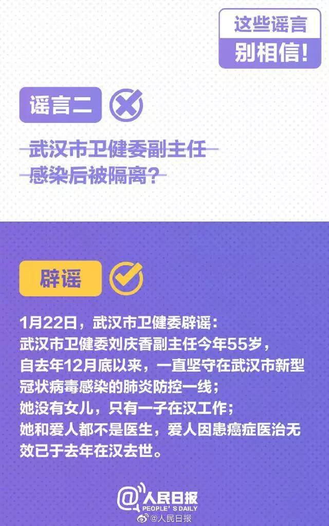 北京協(xié)和醫(yī)院一確診武漢肺炎患者跑了?武漢市衛(wèi)健委副主任感染后被隔離?成都男子經(jīng)武漢停留10分鐘被感染新型冠狀病毒?新型冠狀病毒感染的肺炎引發(fā)關(guān)注,與之同樣贏得“關(guān)注”的還有不少謠言。戳圖了解不信謠,不傳謠!轉(zhuǎn)擴!