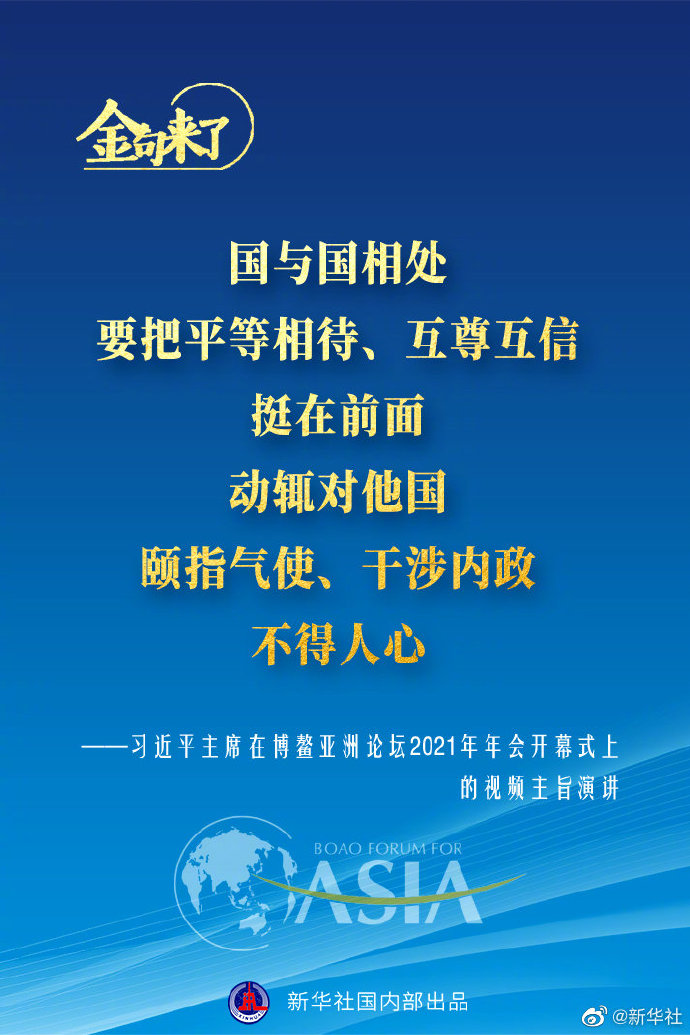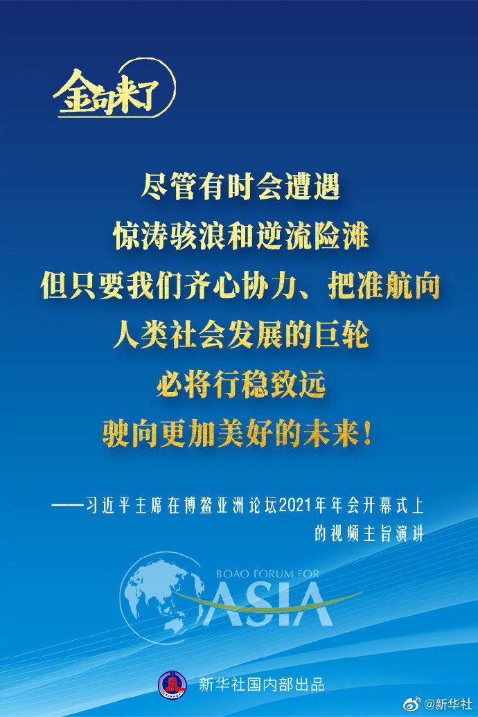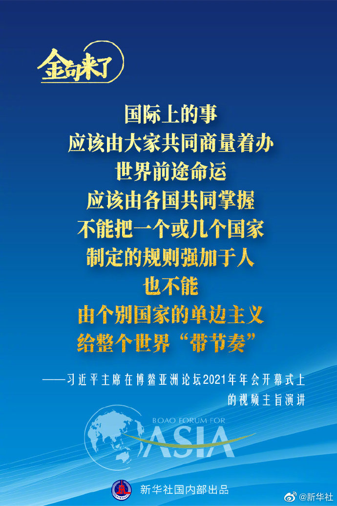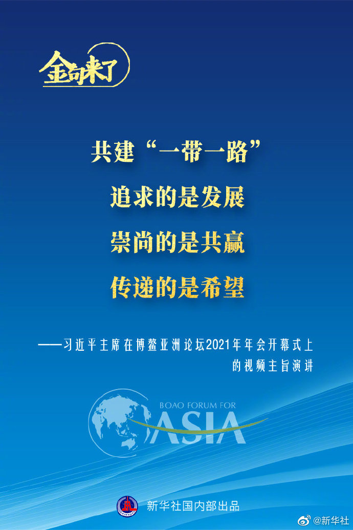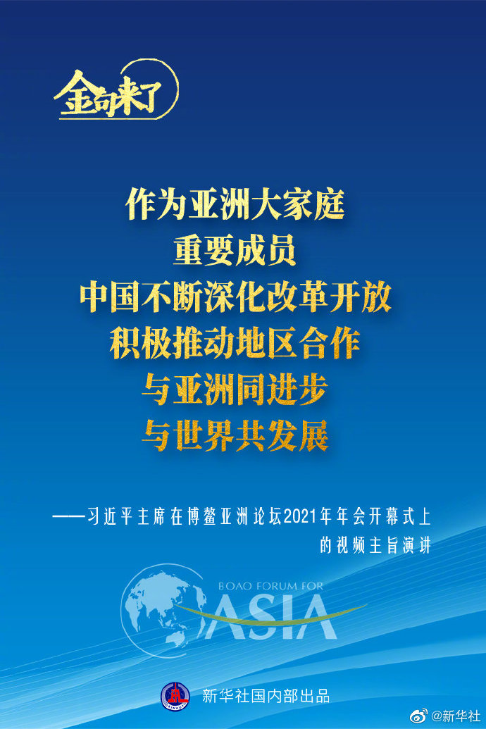 4月20日,習(xí)近平主席在博鰲亞洲論壇2021年年會(huì)開(kāi)幕式上以視頻方式發(fā)表主旨演講。一起來(lái)看演講金句! JDu安康新聞網(wǎng)